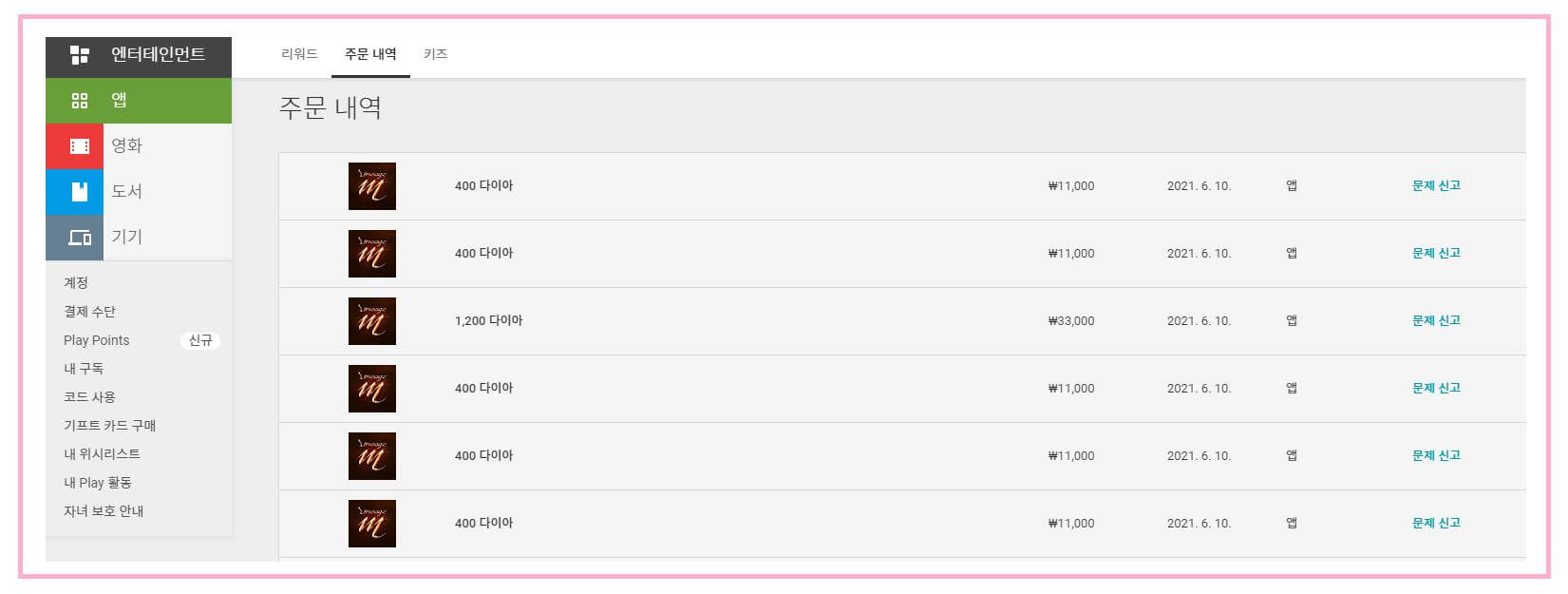 · 플레이스토어 주문내역 확인하기