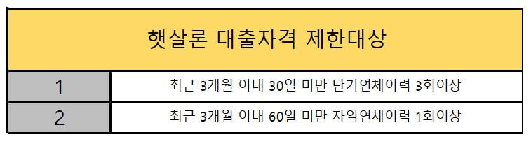 연체자 신용불량자 햇살론 대출자격 조건, 정부지원 서민대출 햇살론의 대출자격 조건에 대하여 알아보았는데요. 햇살론대출자격 조건에 부합하더라도, 제한사유에 해당이 되면 저금리 저신용 대출인 햇살론 신청또한 불가능한데요. 햇살론 대출 제한사유 조건으로는 먼저, 신용관리정보 보유자인 신용불량자의 경우 햇살론 대출자격에 제외대상에 해당합니다.그리고 연체자인 경우에도 햇살론 대출 신청에 제한을 받는데 통신요금 등의 공과금을 장기간 연체한 경우도 이에 해당합니다.