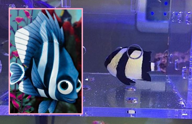 니모를찾아서의 귀욤둥이 "도리"입니다. 도리는 "블루탱"이라 불리우는 열대해수어 입니다. 영화에서는 엉뚱한 모습들을 보여주는데요. 실제로도 블루탱은 죽은척을 하거나 구석에 끼어서 잠을 자는 엉뚱한 매력이 있는 바다물고기 입니다.