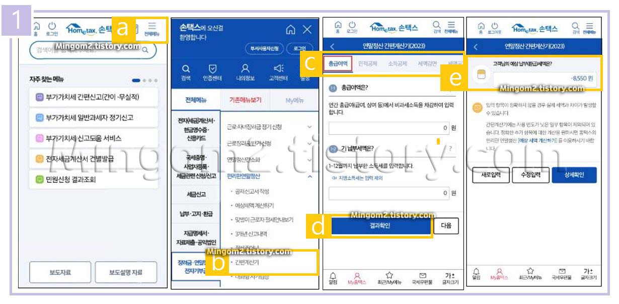 3.[전체메뉴 > 장려금·연말정산·전자기부금 > 편리한연말정산 > 간편계산기] 경로로 이동하기