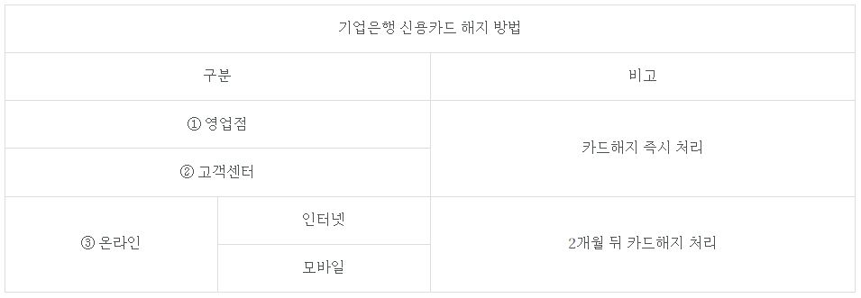 ※ [목차] 기업은행 카드해지
