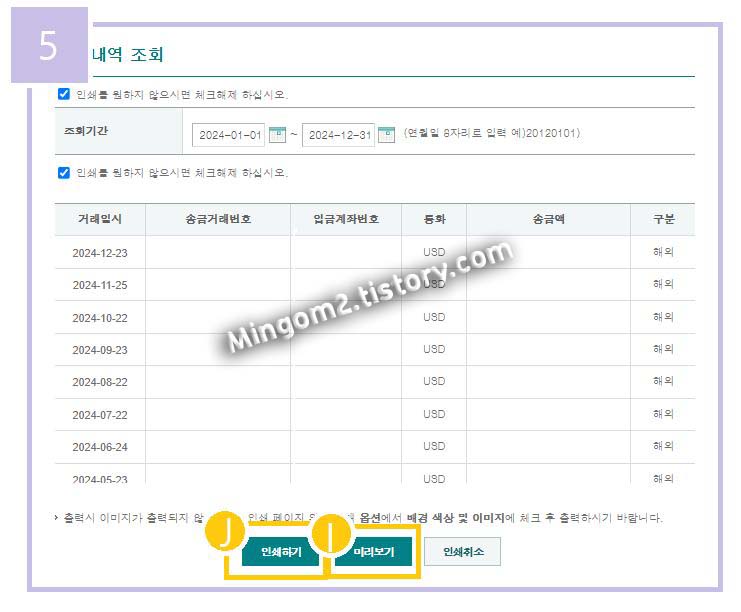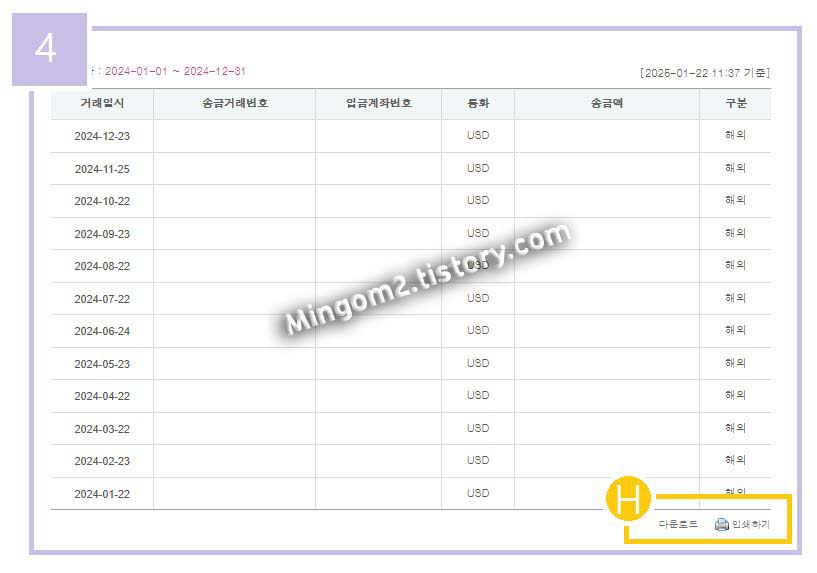 ⊙ 2. 외화송금 내역 발급 방법